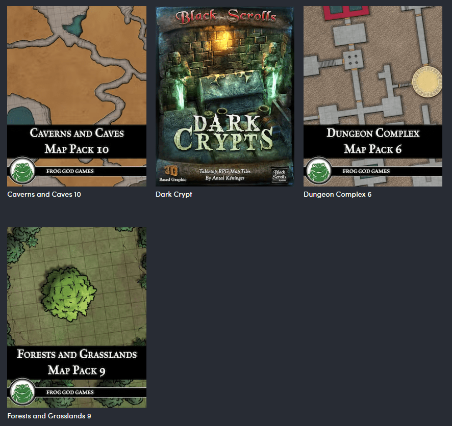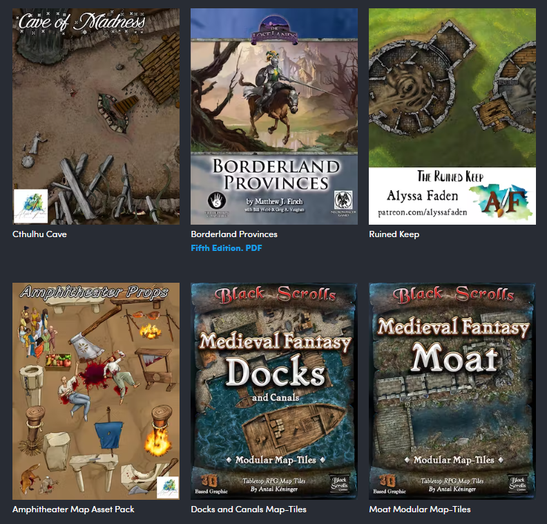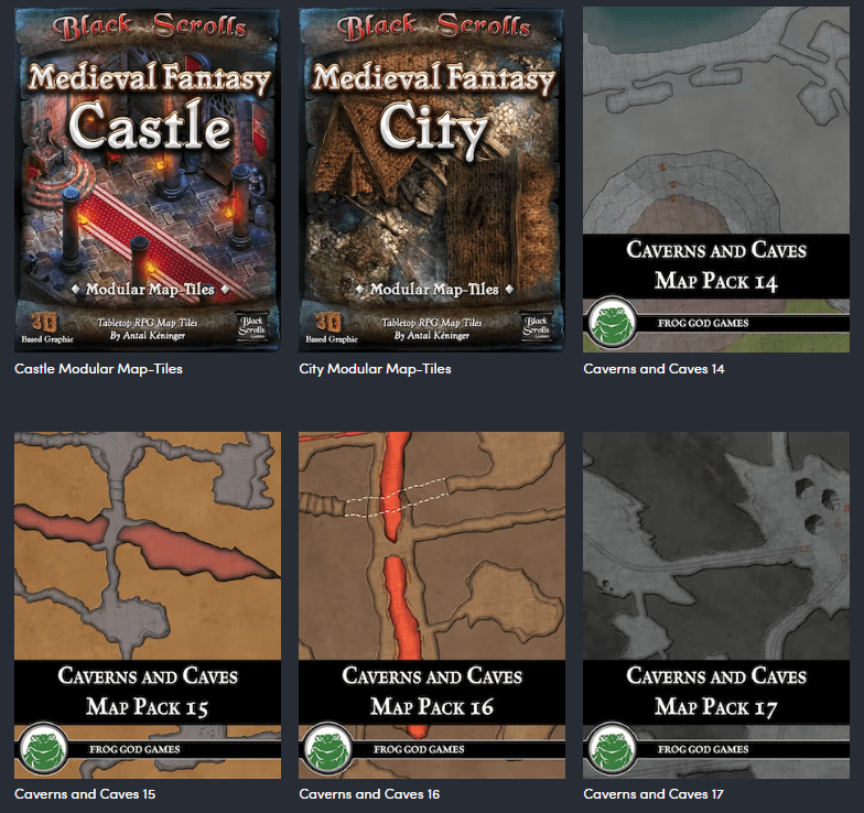 Every story needs a setting, and with this bundle your virtual tabletop RPG group will have more new maps than you’ll know what to do with! With maps like Cthulhu Cave and Ruined Keep and the Borderland Provinces setting ebook by Frog God Games, you’ll have plenty of atmospheric locations to adventure through. With more than four dozen other assortments of caverns, caves, dungeons, fortresses, ruins, docks, and crypts, the only limit is your imagination!