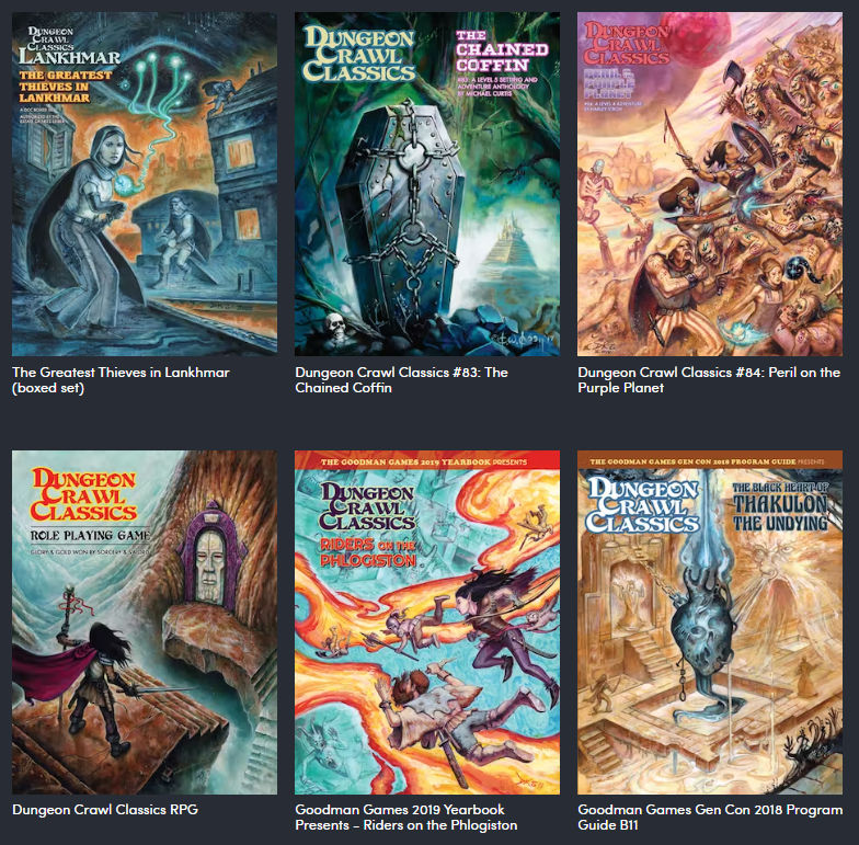 Dungeon Crawl Classics has, apart from the rulebook, a collection of adventures and resources that will satisfy everyone’s needs. There is also a coupon here, a 20% off on Goodman Games online store.