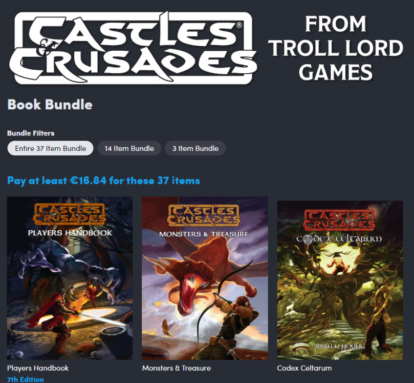 Looking for a tabletop RPG adventure? Wanna try something new ? Castles & Crusades bundle from Troll Lord Games consists of 37 items including all the necessary tools to begin your quest.