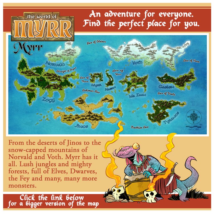 This setting is named after none other than the legendary wizard Oswald Myrr, also known as the Wizard of Zogg, who has significantly impacted the world with his wild magic. Oswald, once a member of the Zogg Wizard Council, led the first settlers to the continent of Myrr but was later expelled from the council for his actions. The world is undergoing changes due to Oswald’s magical experiments, resulting in altered weather patterns, earthquakes, and other natural disturbances.