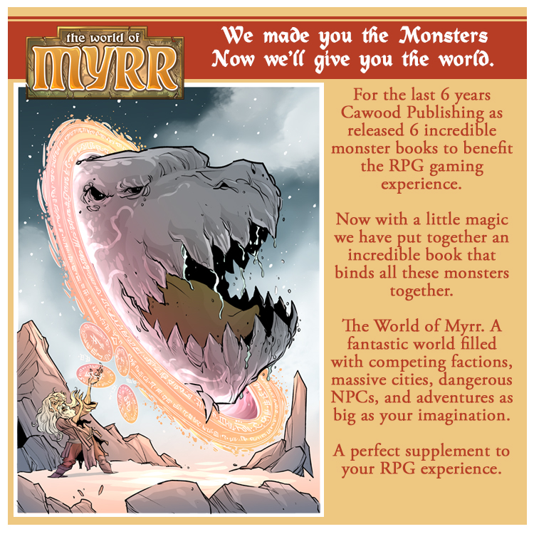 The World of Myrr Campaign Setting by Cawood Publishing offers a dynamic and engaging setting for tabletop roleplaying adventures, with a well-crafted history that can serve as a source of inspiration for players and Game Masters alike.