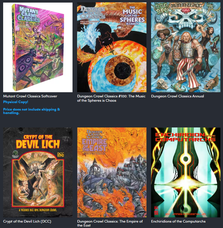 Aaaaand there’s also a physical softcover copy of Mutant Crawl Classics that is a system easy to pick up and play, no matter your age or experience level, with unique character creation. Keep in mind that the bundle price does not include shipping and handling.