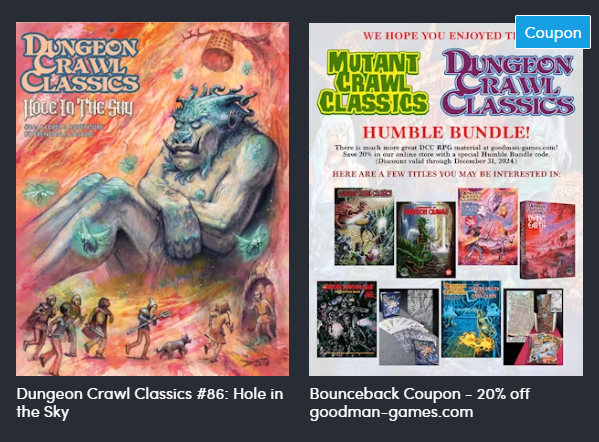 Last but not least, there is an exclusive 20% discount on your next purchase from the Goodman Games online store within this bundle. Be sure to redeem your coupon before it expires at 11:59 PM PST on December 31, 2024.