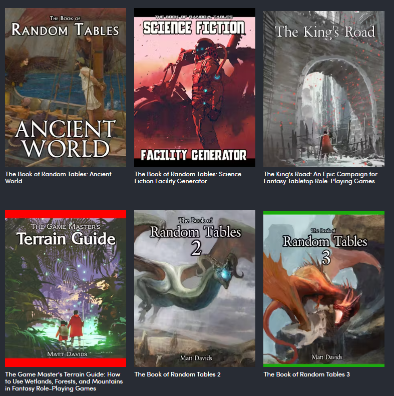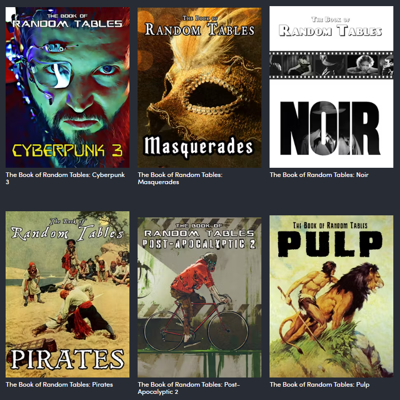 There are also numerous books of random tables here covering everything from quests, encounters and dungeons to specific themes like space, horror, and cyberpunk. These are excellent resources for beginners too, providing them with everything they need to take their first steps in the gamemaster’s journey without feeling overwhelmed.