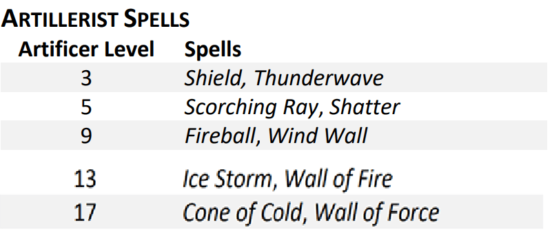 The artillerist also remains almost the same, with only some minor adjustments and nothing new compared to 5e.