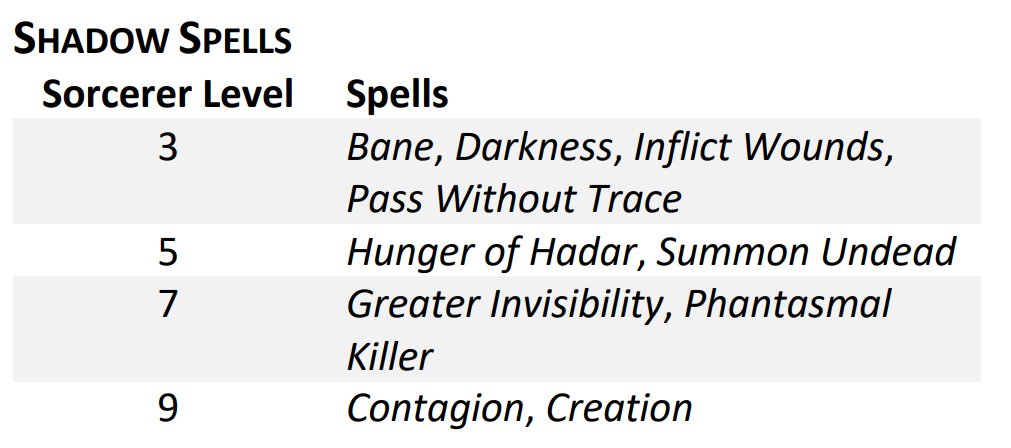 You get your extra prepared spells. What’s this? It’s Darkness! The other spells are also pretty nice and fit the theme. Except maybe Contagion, but it’s still fine.