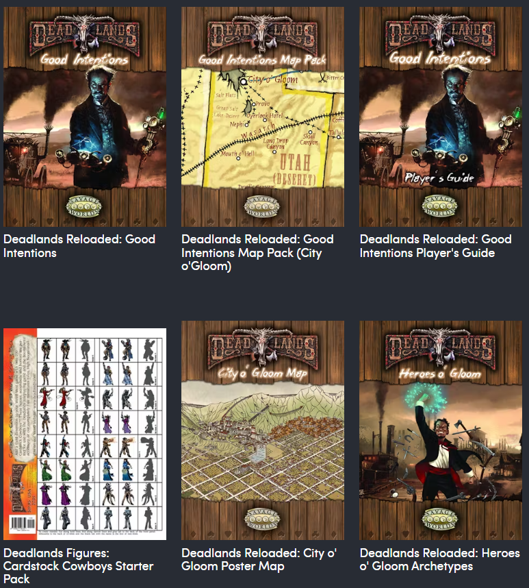 As you probably guessed, Deadlands Reloaded is a revised edition of the original Deadlands RPG. In this world, horror and fantasy meet the western genre, while players take the roles varying from gunfighters and hexslingers to shamans and even mad scientists as they explore the dead land. This bundle includes both short and long-term campaigns, along with pre-generated characters to help you start playing right away. The only additional thing you need to play is the Savage Worlds Core Rulebook, which is not included in the bundle.