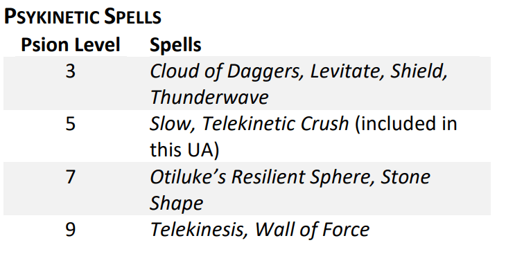 Psykinetic Spells (Level 3)