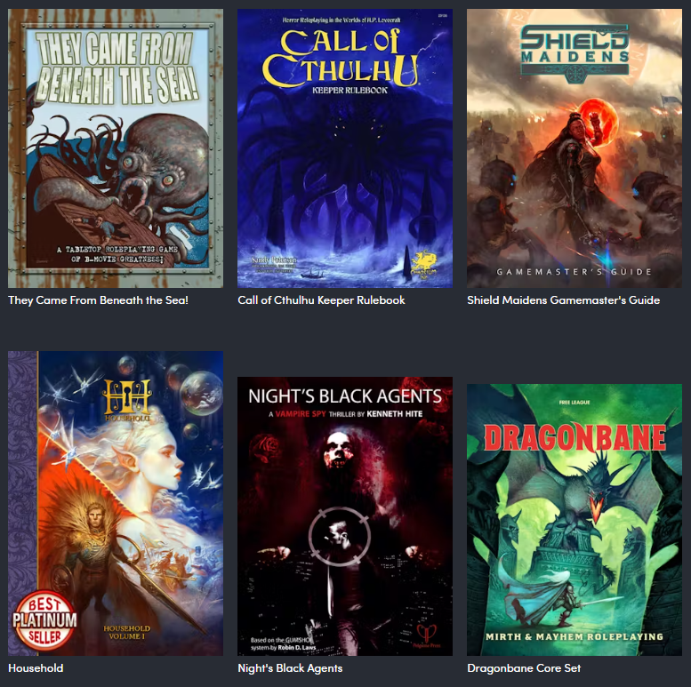 And before I forget, here’s a neat thing about this bundle. You also get the PDFs on DriveThruRPG. So you get everything DRM-free, but you also add them to your DTRPG library. I didn’t see this mentioned anywhere on the bundle page, but I got a link to redeem the bundle on DTRPG. This pleased me a lot.