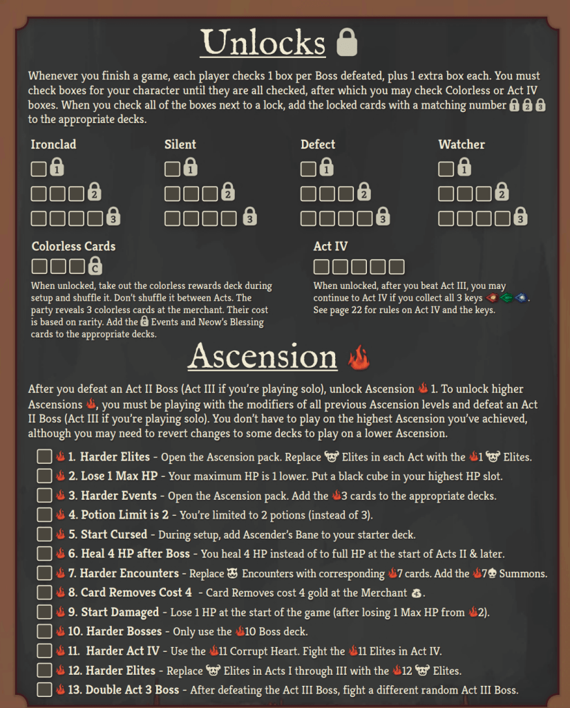 - Larger cards for each of the Bosses, and their alternate versions for higher Ascensions.