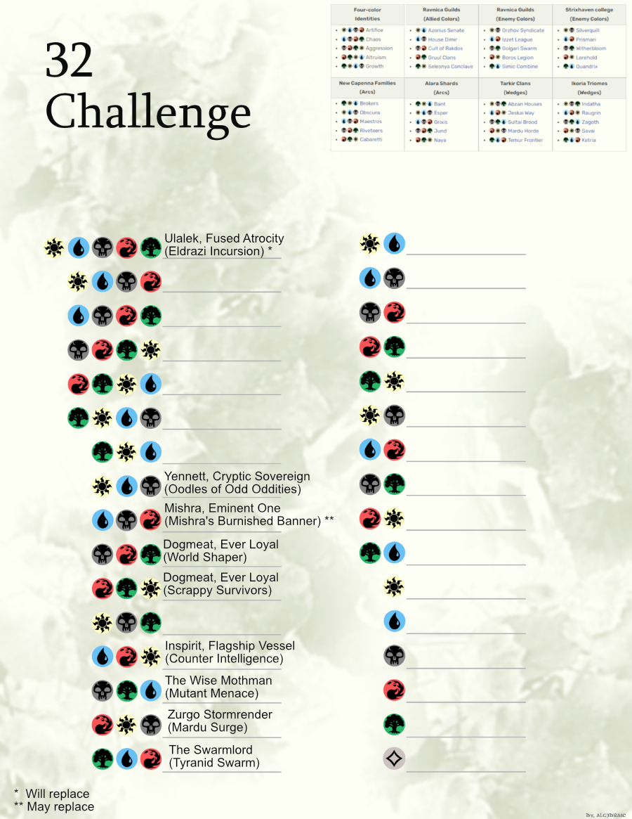 I’m at 9 out of 32 decks so far. I still have more to do, but that just makes it more fun. I have covered almost all 3-colour combinations, with only the Bant and Abzan slots still open. Both are interesting combinations, and I am going to have fun looking for decks. Once I am done with those, I think I will look into a 4-colour deck or a couple of the 2-colour ones. I acquired some more legendary creatures recently, so I need to check out my binders again.