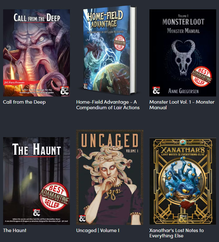 The second bundle, Dungeon Masters Guild Top Content from the D&D Community, features 19 adventures and supplements loved by the community, waiting to assist you.