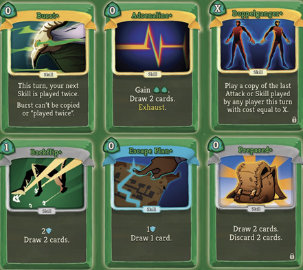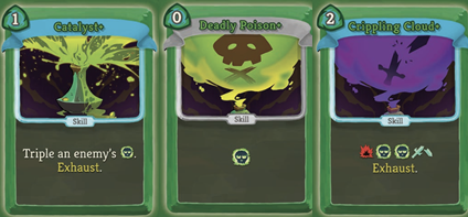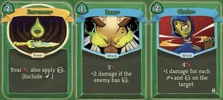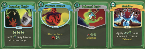 - Good Cards: All the ones that apply poison, Distraction, Choke.