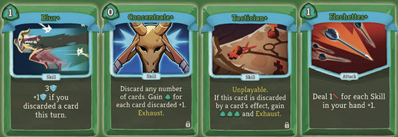 - Good Cards: Acrobatics, Tactician, A Thousand Cuts, Concentrate, Blur