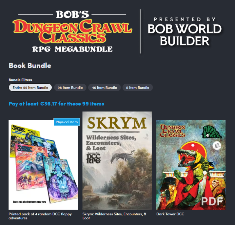 You can find the bundle here, which ends around the 22nd of January. At the moment, the price is around €16.27 for all the digital items, while at €36.17 you also get 4 physical DCC adventures.