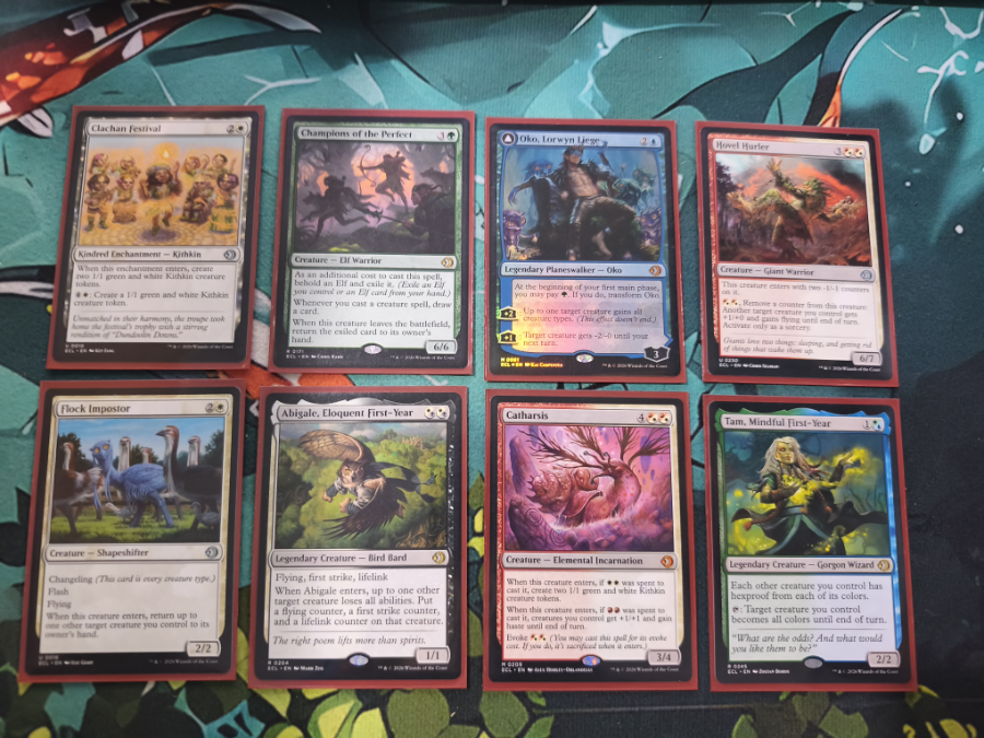 My strategy was to play Kithkins and swing for the win. The times this worked, it worked perfectly. The times it didn’t, it was a slow game that usually turned against me. I didn’t have a card that would be considerd bomb in the sense that it would win me a game on its own. I needed to have bodies on the ground and ready to swing to victory. Thankfully, I had a bunch of Kithkin and Shapeshifters. Catharsis was also really good at filling my board. Clachan Festival was extremely good on turn three. A small synergy I happened to discover during a match was playing Reluctant Dounguard on turn three and Clachan Festival on turn four, allowing Reluctant Dounguard to swing for 4 damage. Oko’s ultimate was basically a win for me, so whenever he was on the board and not immediately dealt with, it meant I was 99% sure I would win the game.