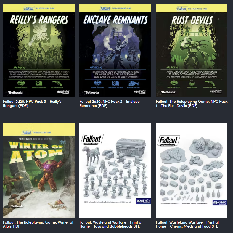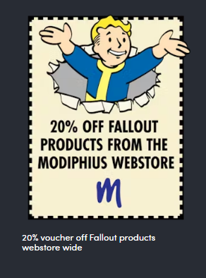 And last but not least, there is a voucher available at the lowest tier at €4.48 that gives you 20% off Fallout products at modipius.net or modipius.us until the end of the year.