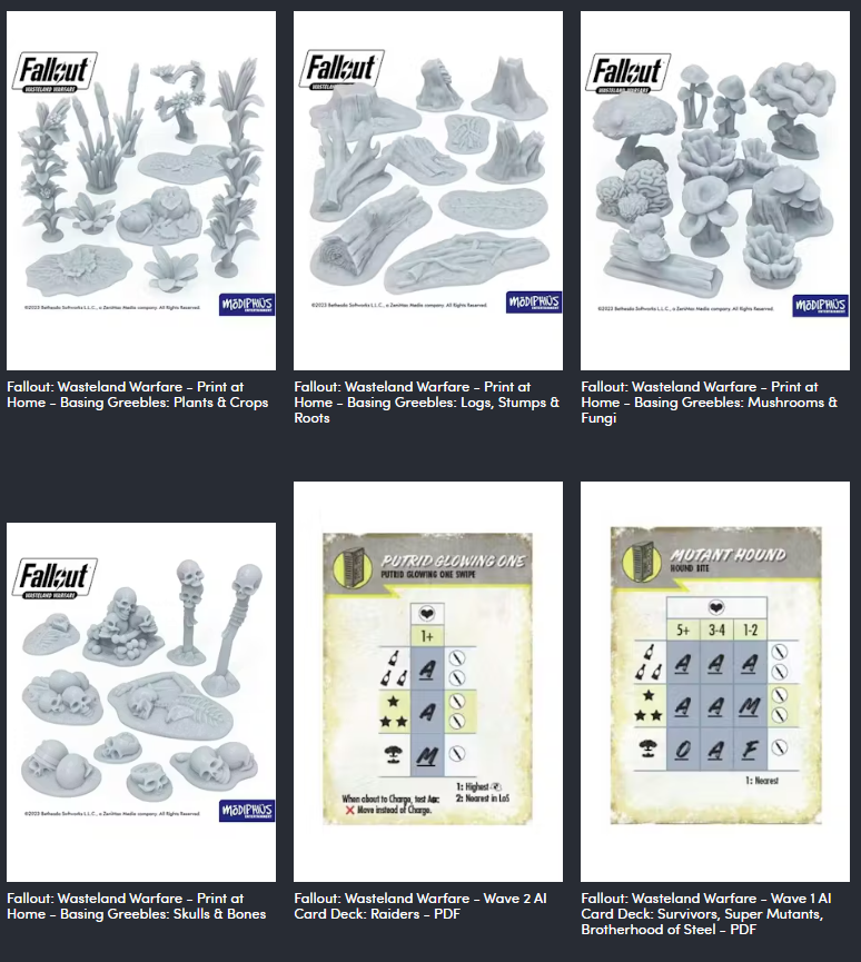 But there is more! The bundle also includes various STL files to truly bring your tales to life, even if they aren’t Fallout-related. Looking at you, lovely mushrooms. These pieces can enhance your world, even if you are not that interested in the TTRPGs but enjoy crafting spaces and battlefields.