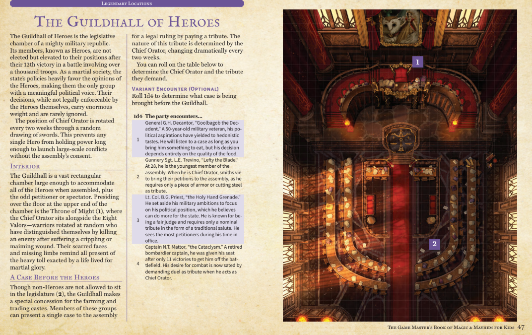The Game Master’s Book of Magic and Mayhem for Kids is a toolkit for players aged 10-14 and part of the well-known Game Master series. Inside these 200+ pages, you will find rich lore, NPCs, monsters, locations, traps and random tables to help you craft your own tales, limited only by your imagination.