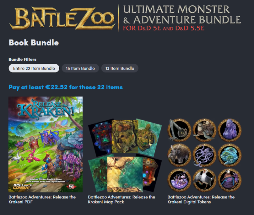 Battlezoo Ultimate Monster and Adventure Bundle is a 22-item collection for D&D 5E and D&D 5.5E, providing adventures, monsters and digital equipment to breathe life into your games.